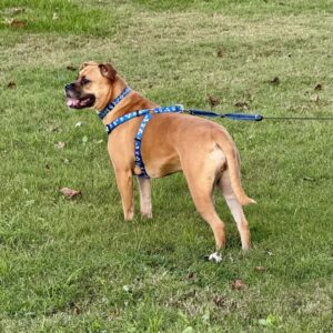 Layla: Hi there! I’m Layla, I’m about 3.5 years old, and I weigh around 50 pounds. That makes my body medium sized, but my personality is the size of a mastiff! I am your typical boxer mix, quirky, spunky, and always ready for my next adventure.